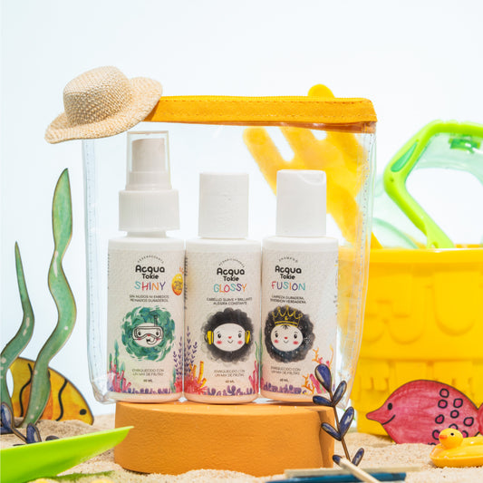Kit Viajero Acqua Tokie Shampoo Sunrise + Acondicionador Sunny + Desenredante Shiny Cabello Claro