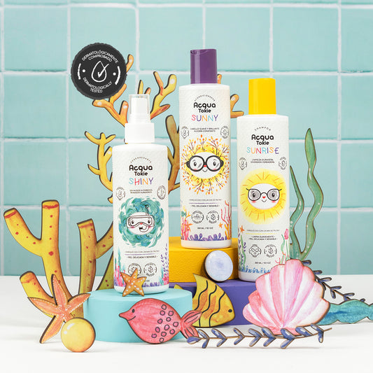 Kit Acqua Tokie Shampoo Sunrise + Acondicionador Sunny + Desenredante Shiny Cabello Claro